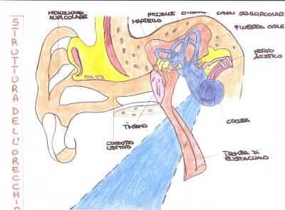 L'orecchio ha una sua struttura interna molto complessa, per poterla rapprersentare abbiamo scelto il sistema del successivo ingrandimento delle porzioni interne. Insomma dal più grande al più piccolo, la struttura dell'orecchio si presenta varia e ..... piena di sorprese: ecco i nostri disegni